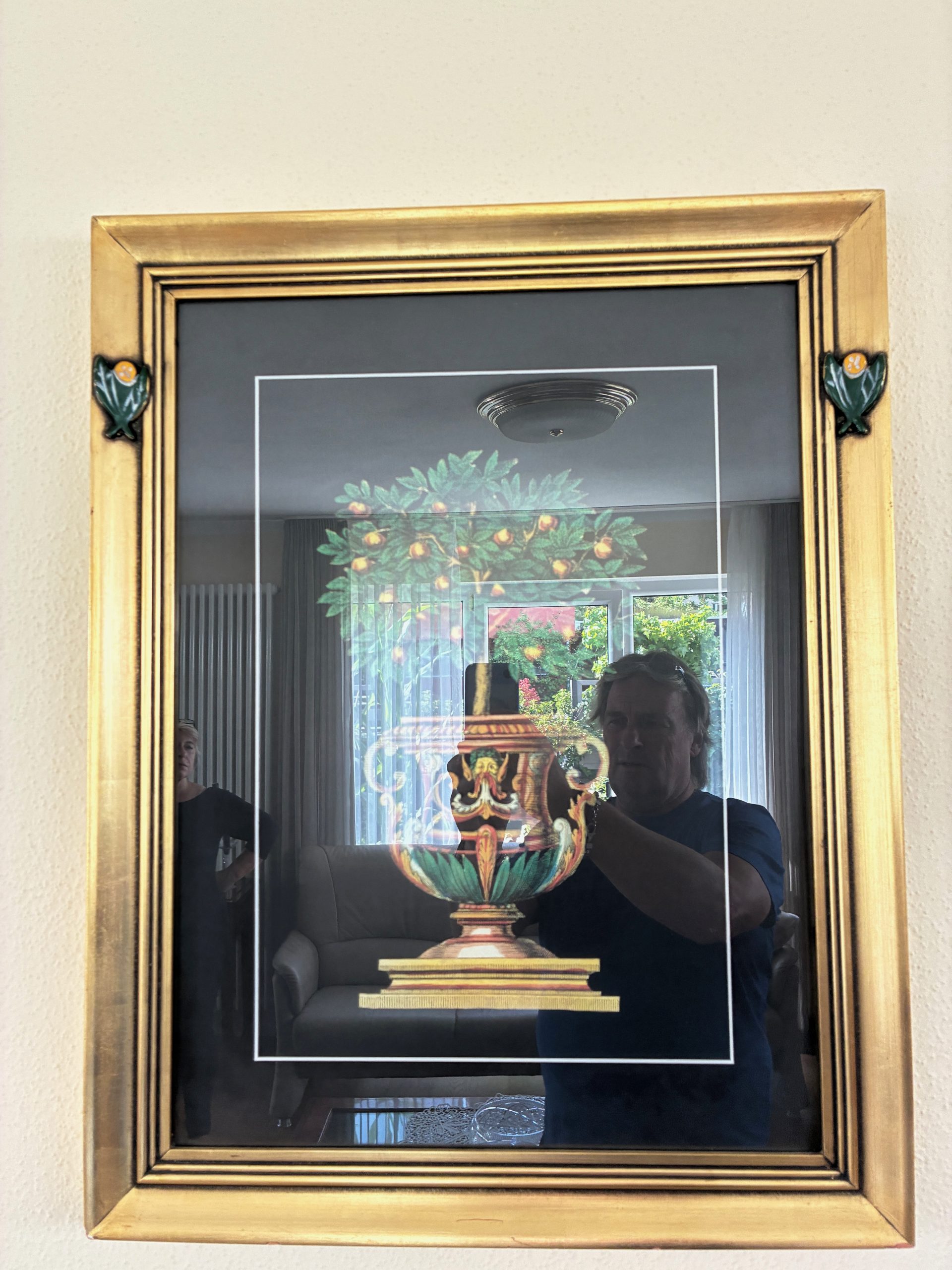 D 2. Italienischer Holzspiegel hand bemalt b 75 h 84 350.-