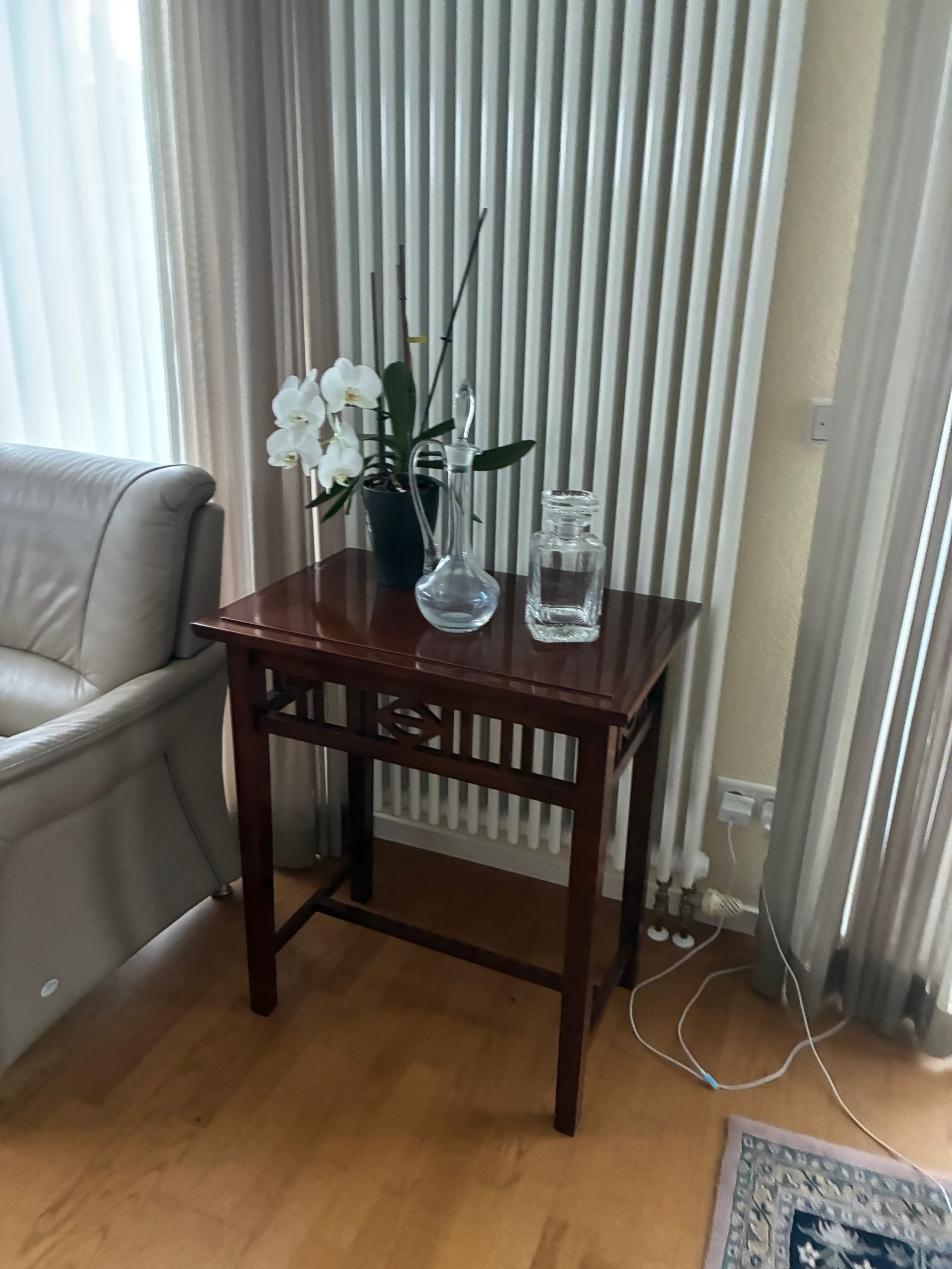 M 6. Runder Mahagoni Tisch mit Messingdetail 73 cm ( hat ein paar Kratzer ) 125.-