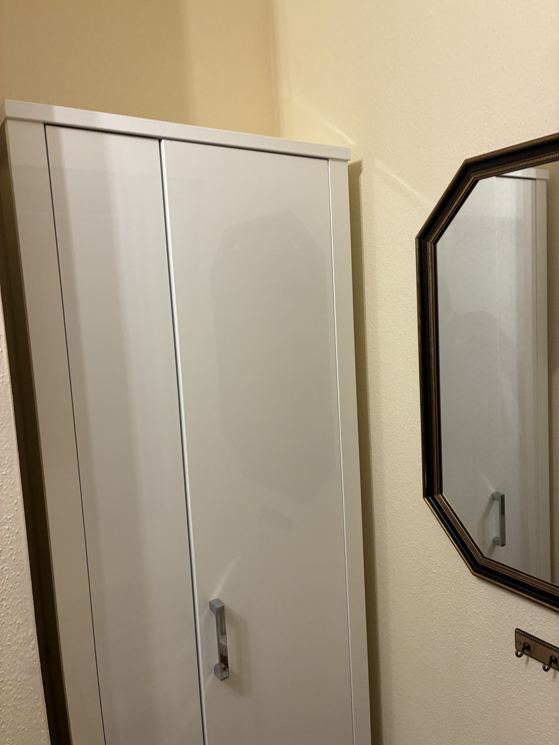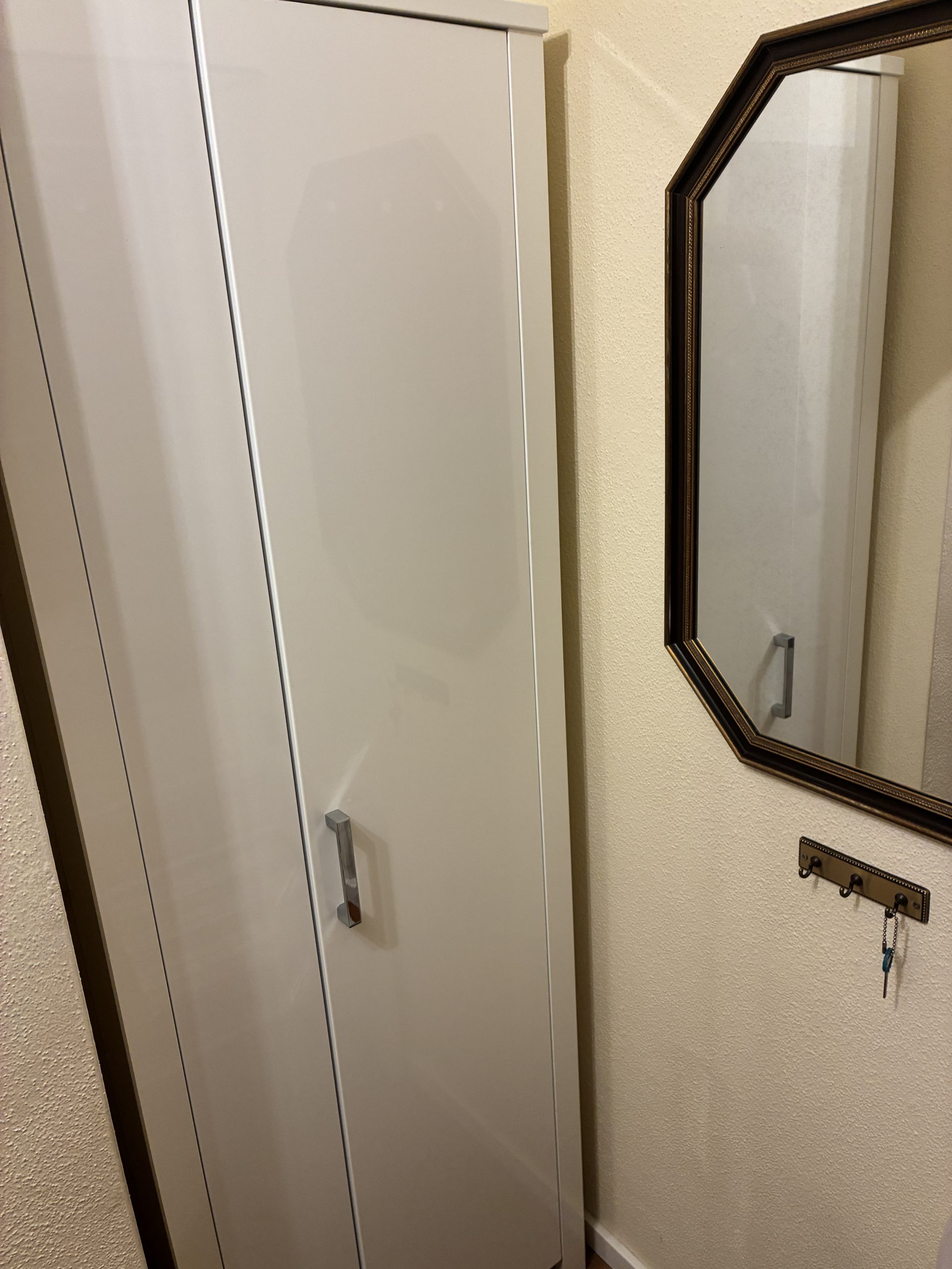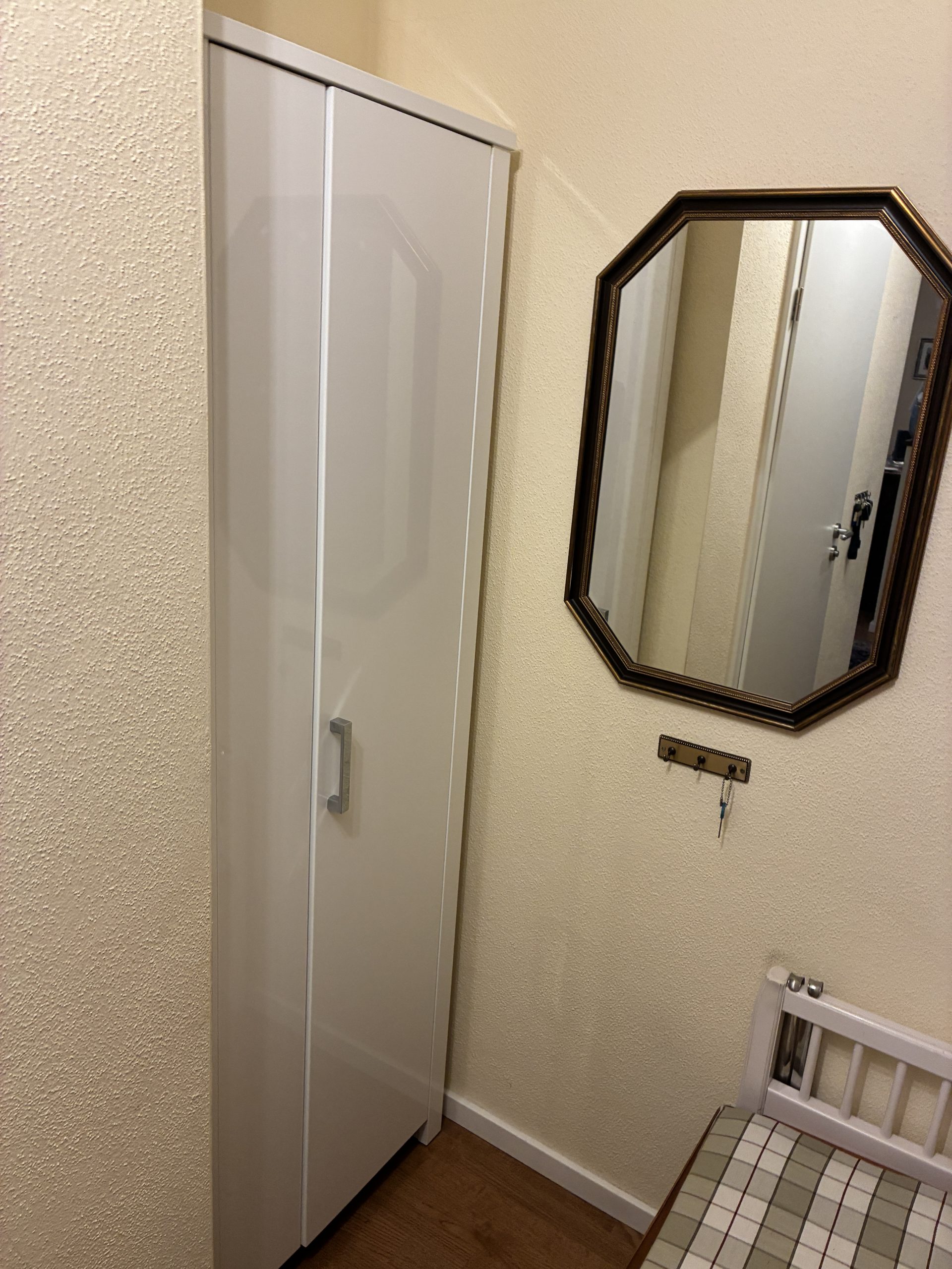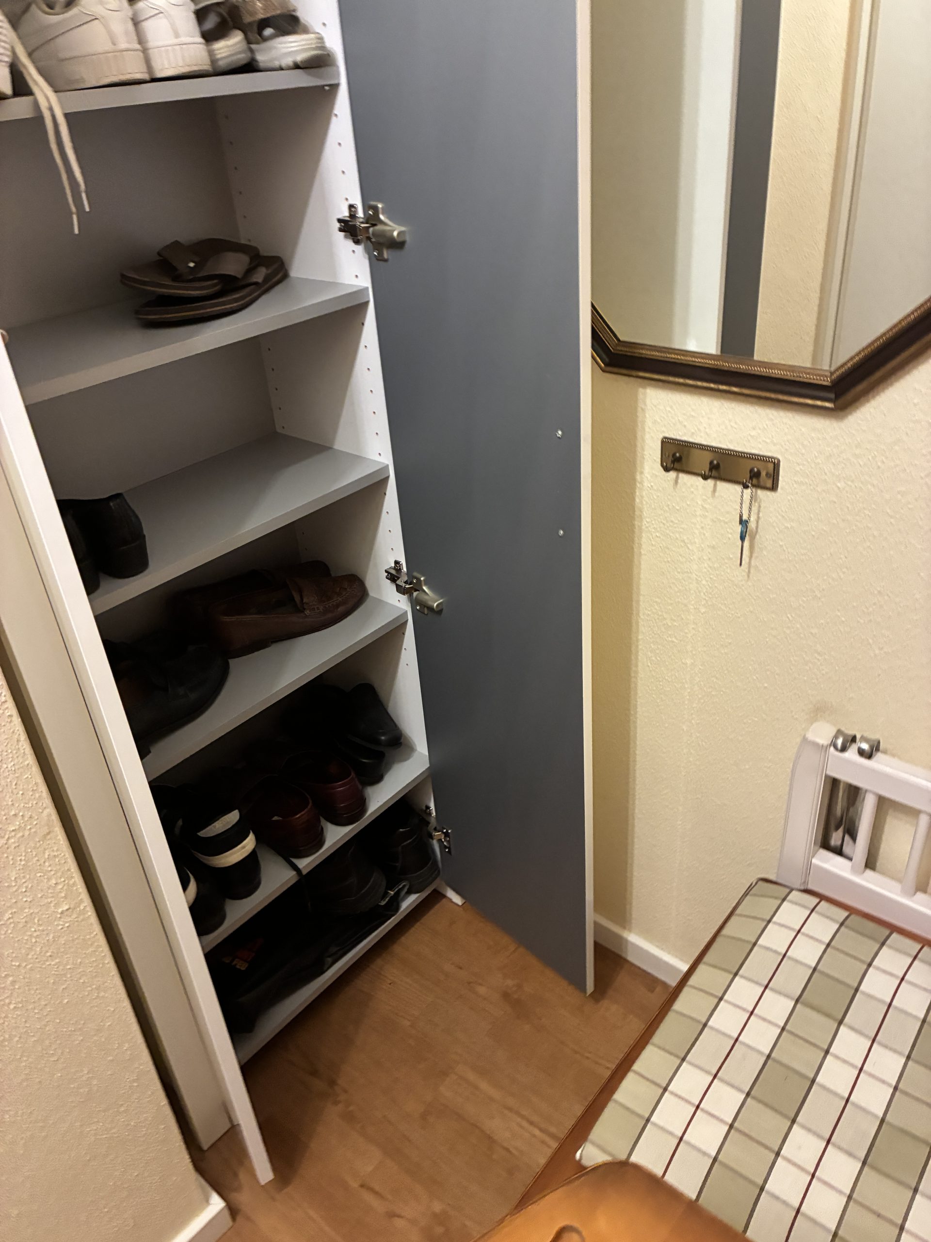 M 24. Schuhschrank mit Hängerauszug weiß Lack 1,95*0,65*0,35 65.-
