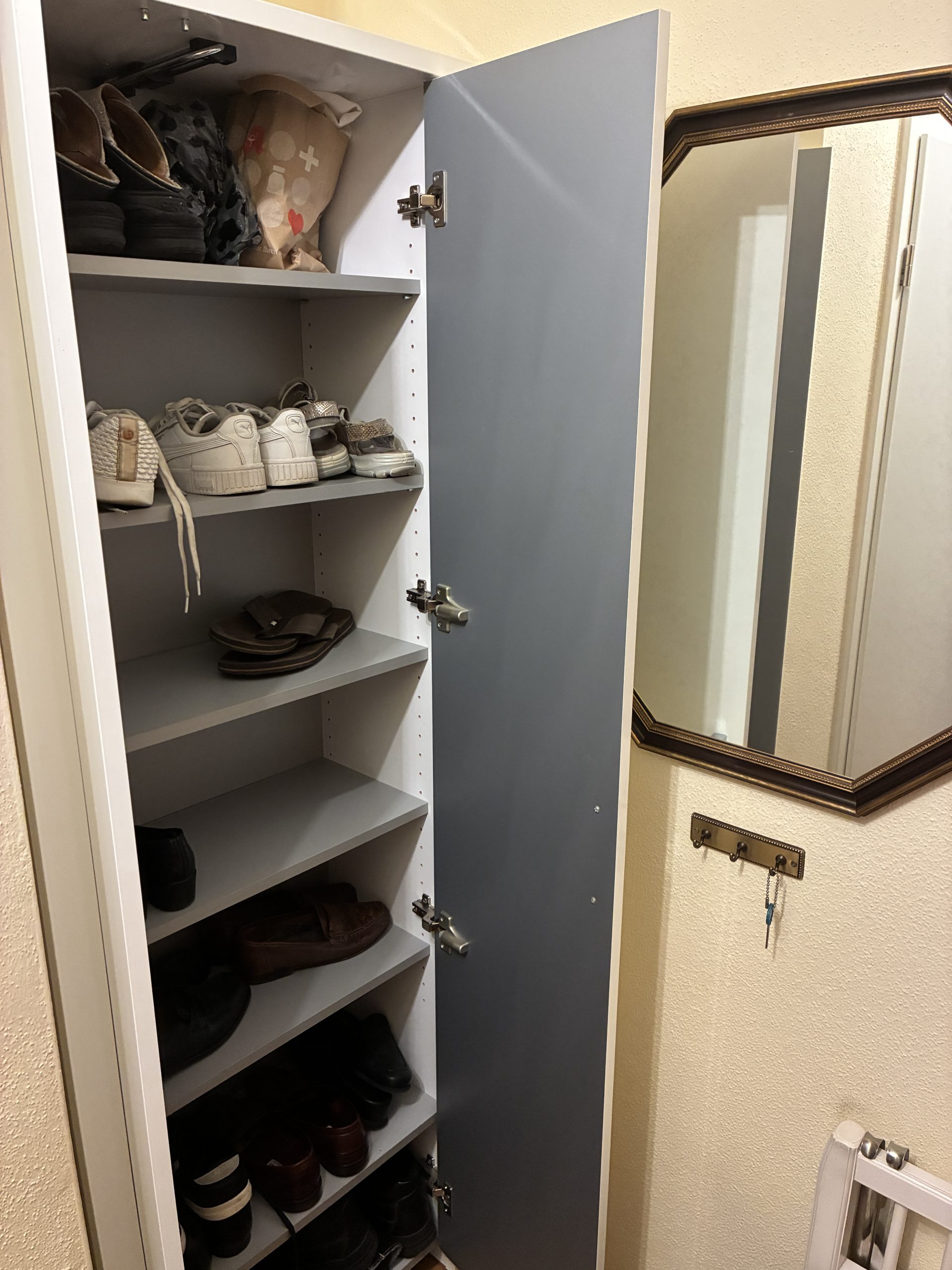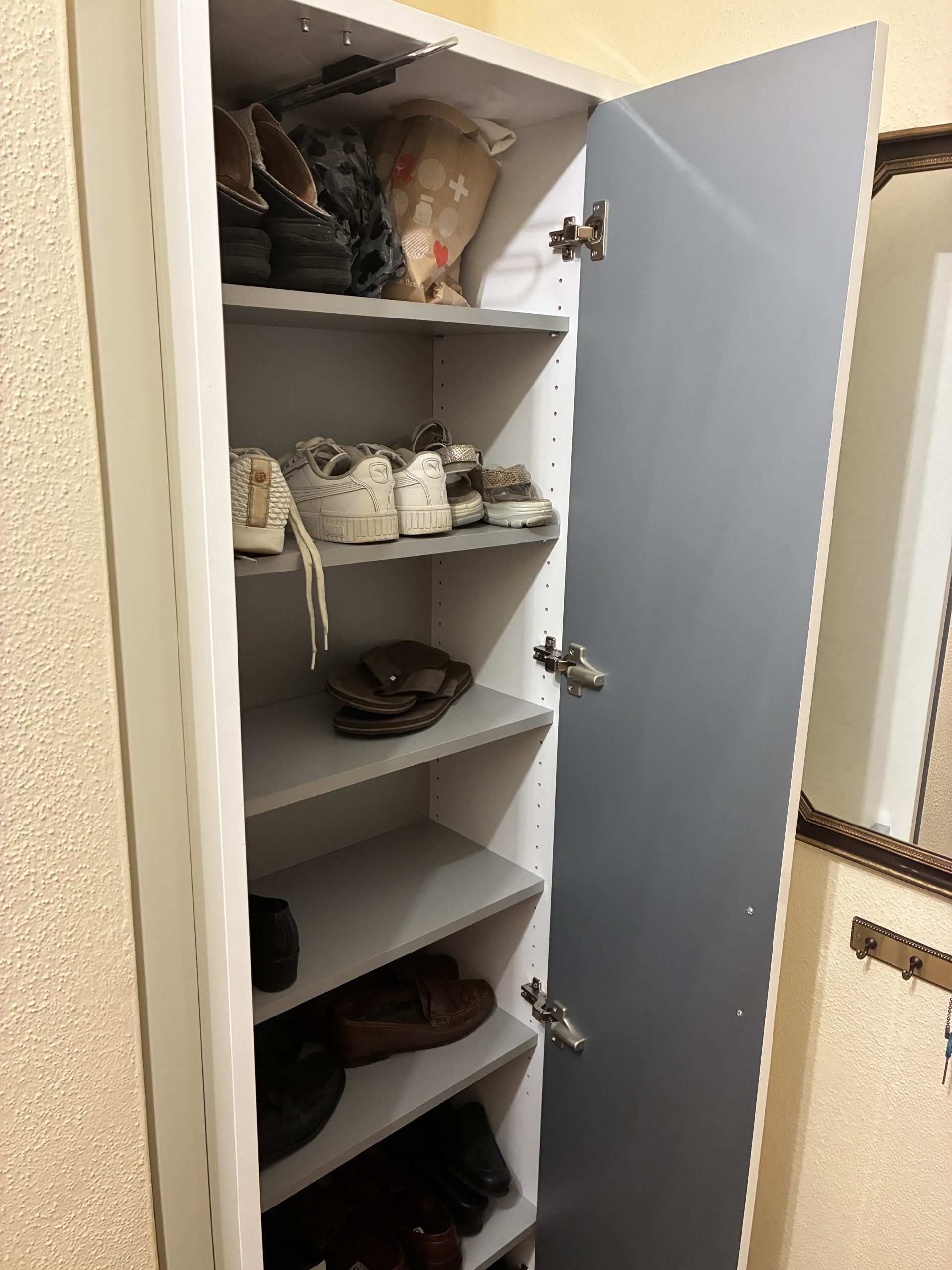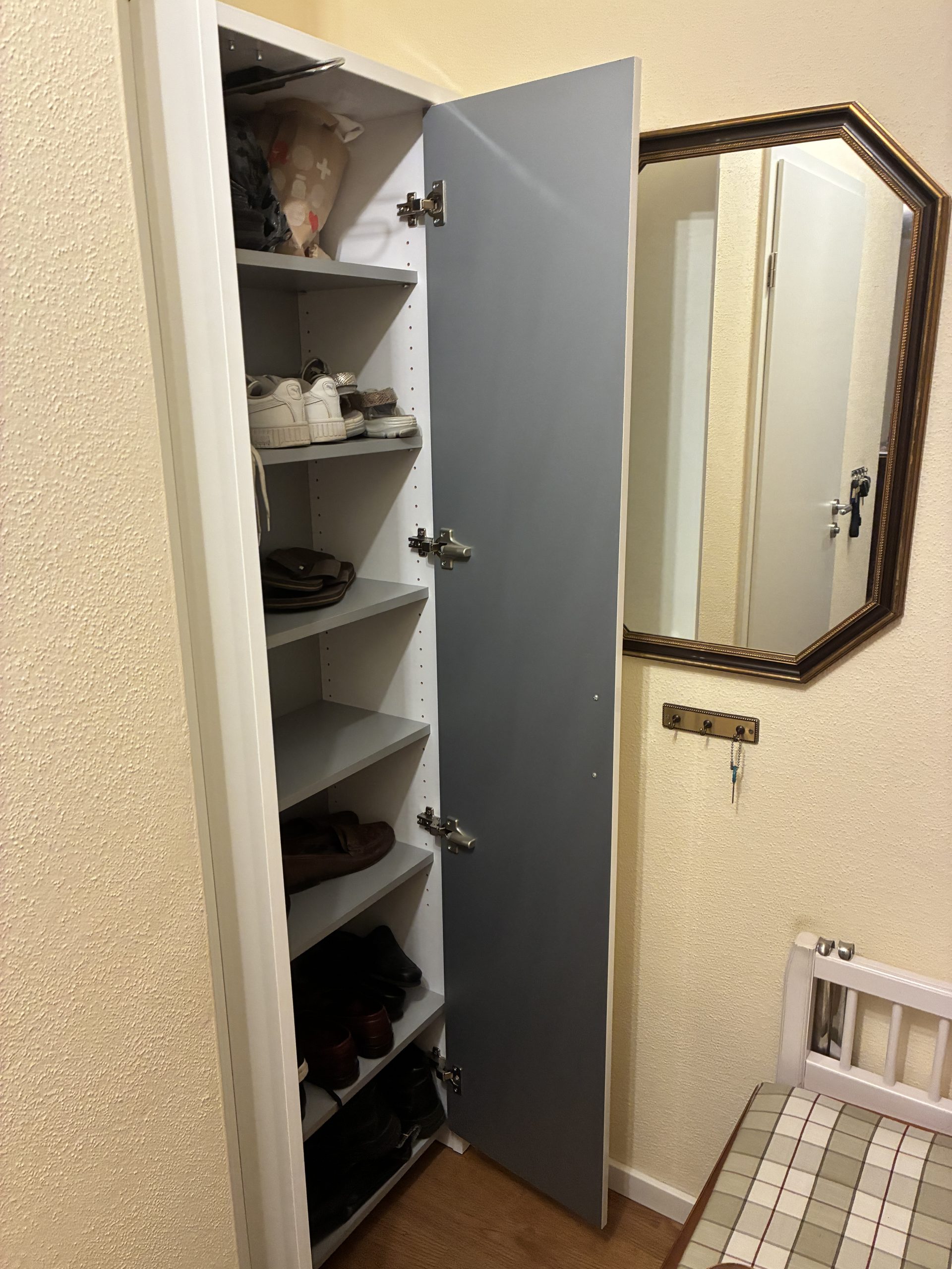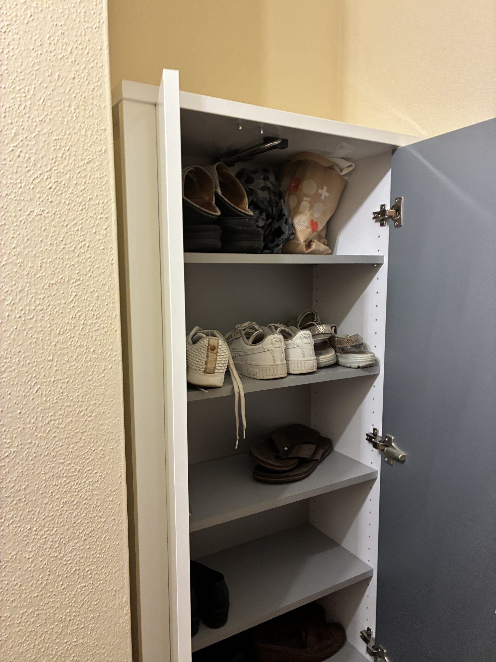 M 24. Schuhschrank mit Hängerauszug weiß Lack 1,95*0,65*0,35 65.-