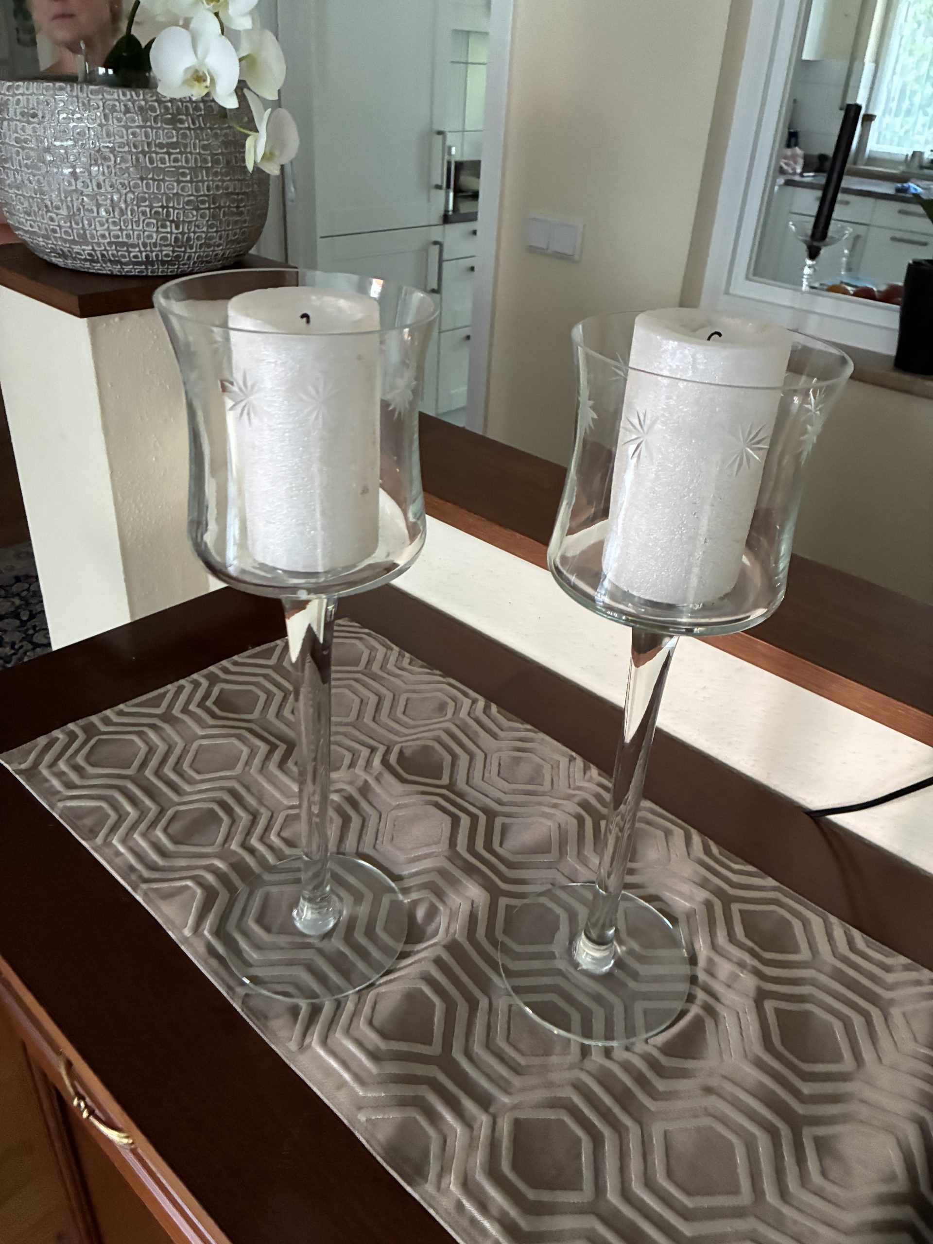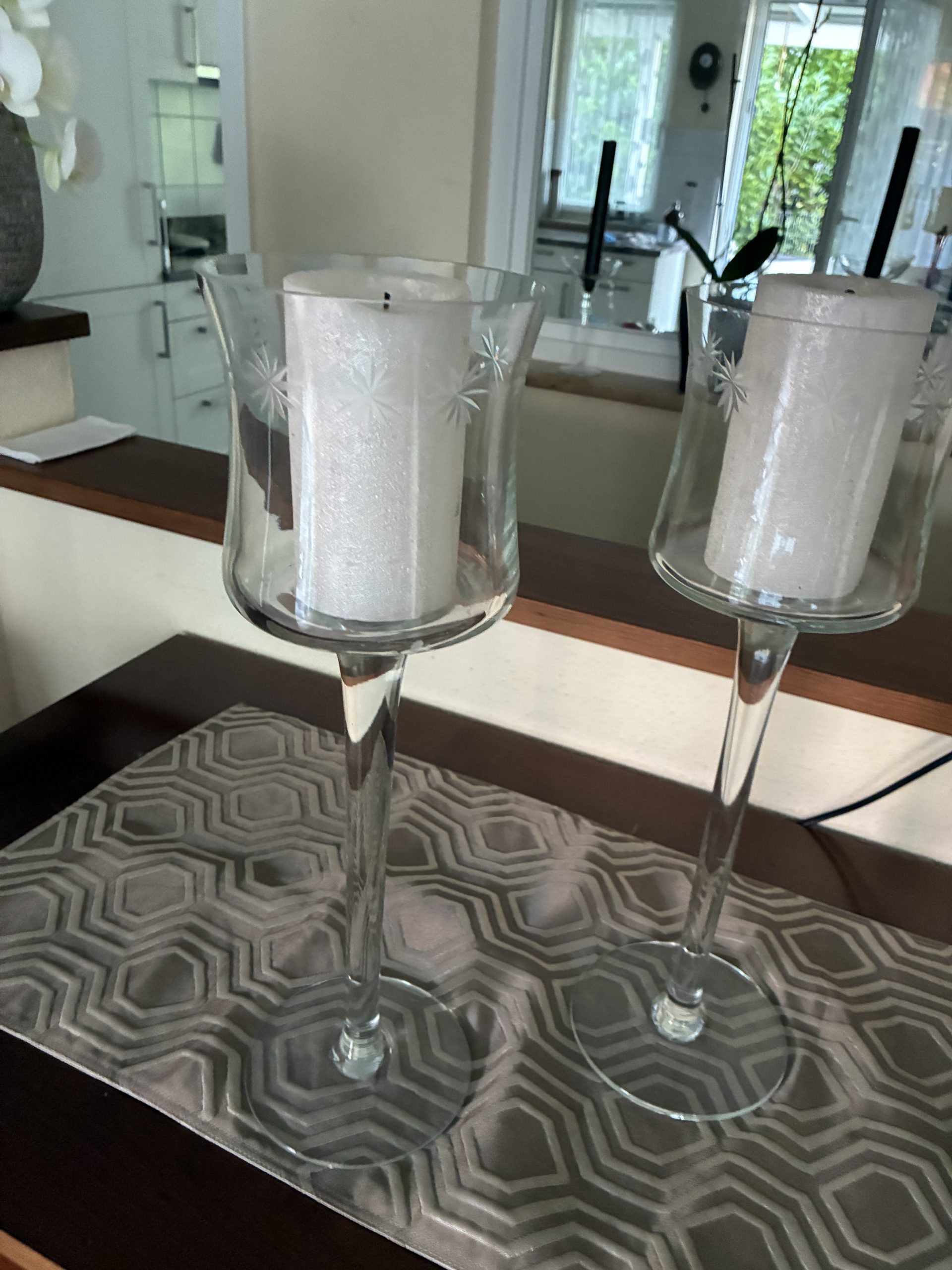D 66. Kerzenständer ohne Kerze in Glas 40cm 15.- pro