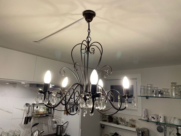 D 56. Schöner Leuchter Landausstil – 5 armig , bronzefarbenes Metall mit Kristallen